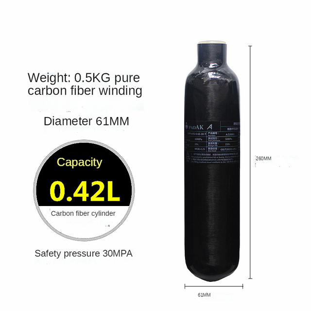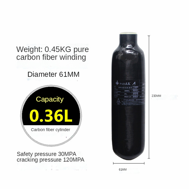 0.36L/0.42L/0.5L Carbon Fiber Gas Cylinder 30MPA High Pressure Gas Cylinder Portable Oxygen Tank M18*1.5 Thread