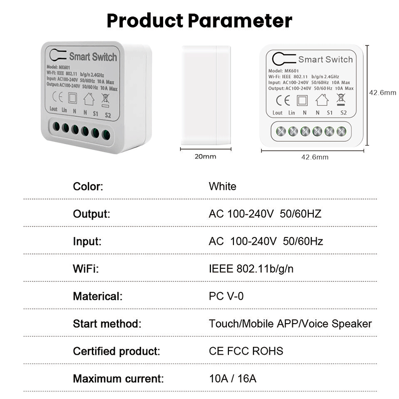 Smart Life Domotica Interruptor Inteligente Mini 16A Switch APP Voice Control Dual Control Modification Smart Wifi Switch