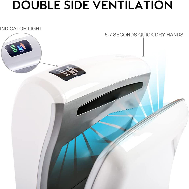 • HIGH SPEED HAND DRYER - Double side Jet design with ultra high speed. 1800 Watts 95m/s air dryer, fast drying within 5-7 seconds, 3 times faster than compact hand dryers. Its speedy dry time and highly refined design creates a refreshing lifestyle and better customer experience in high traffic area.