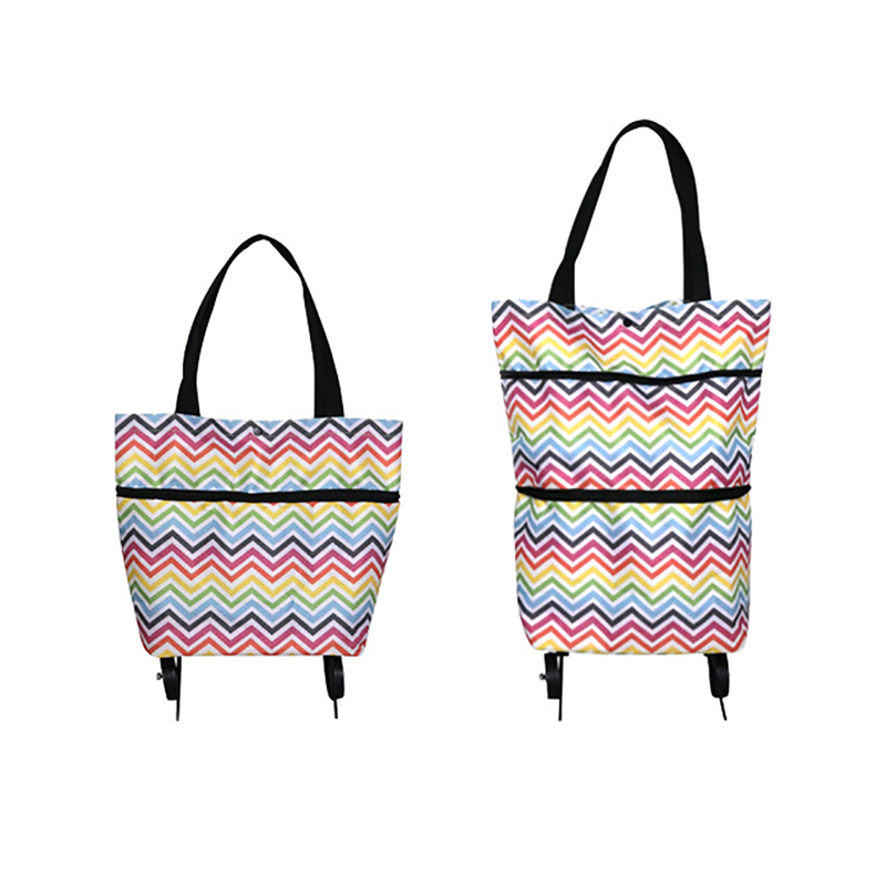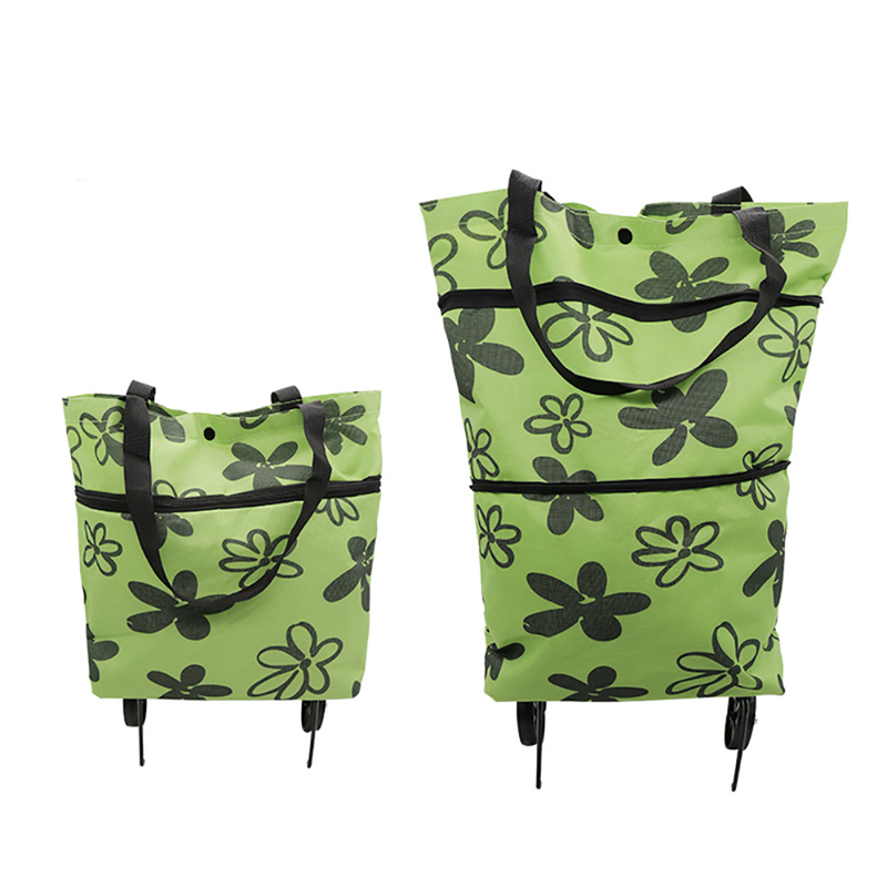 2 In 1 Supermarket Portable Shopping Cart with Wheels Resuable Foldable Oxford Cloth Storage Bag Food Sundries Holder Carrier