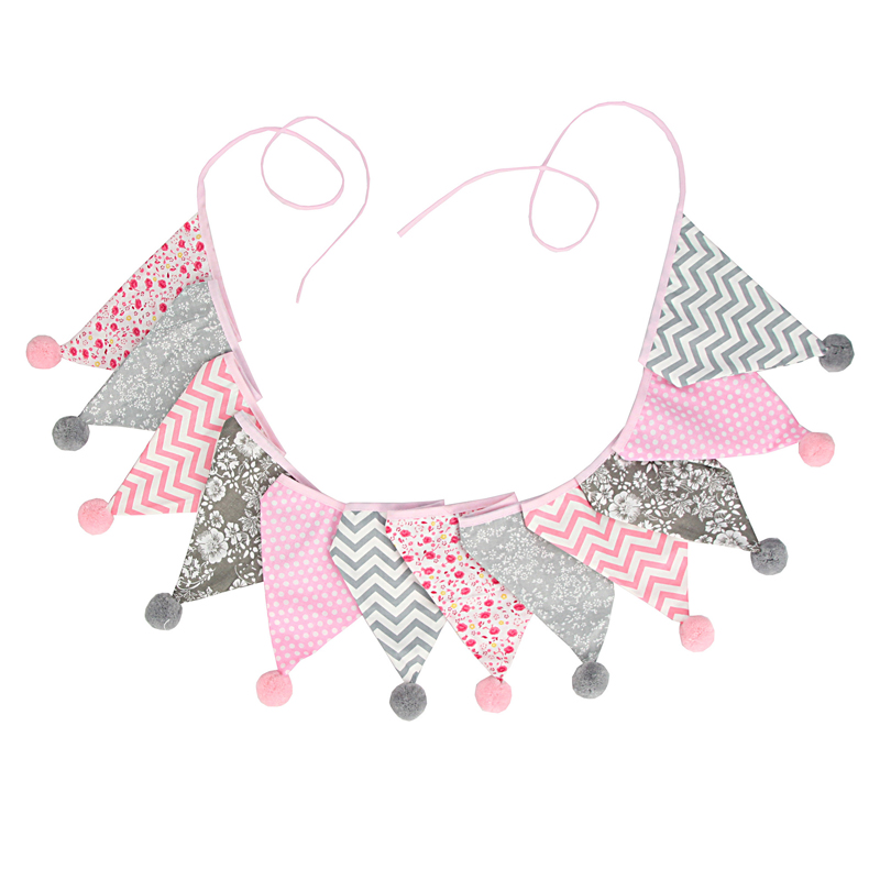 20 Styles 3.2m 12 Flags Cotton Banner Fluffy Ball Pennant Garland Children Kids Baby Shower Birthday Bunting Wedding Party Decor