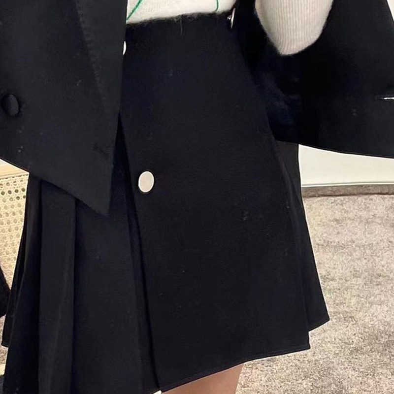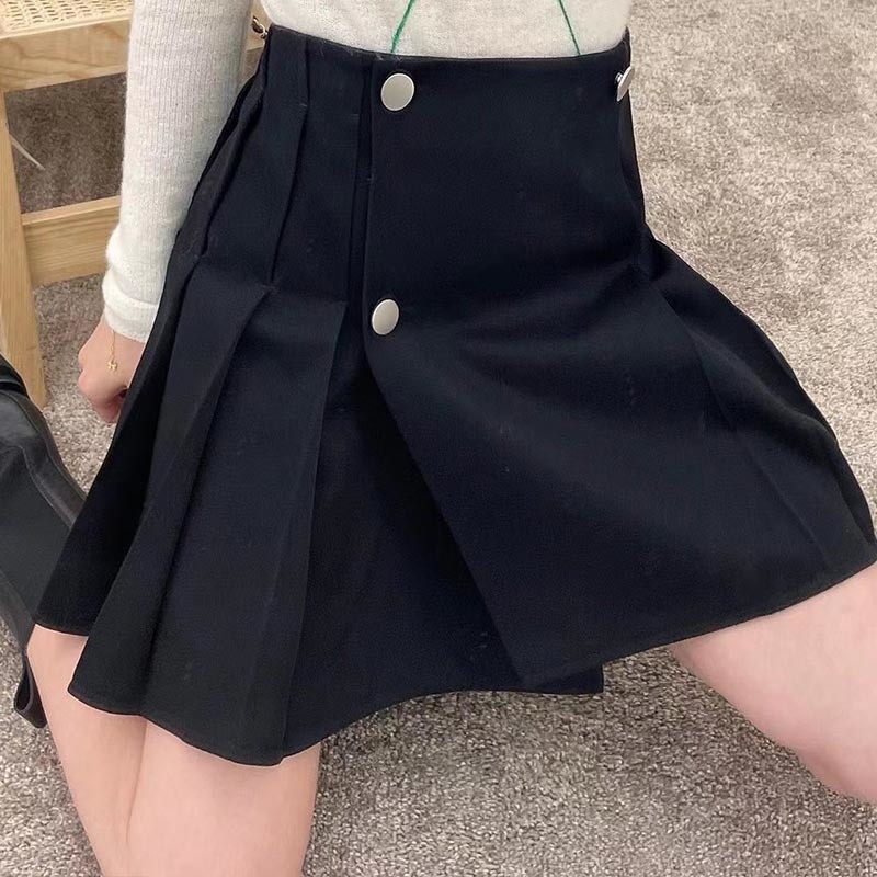 22 Spring High Waist Uniform Pleat Skirts Designer Metal Double Breasteds Mini Skirt Simple Black Pleated Skirts