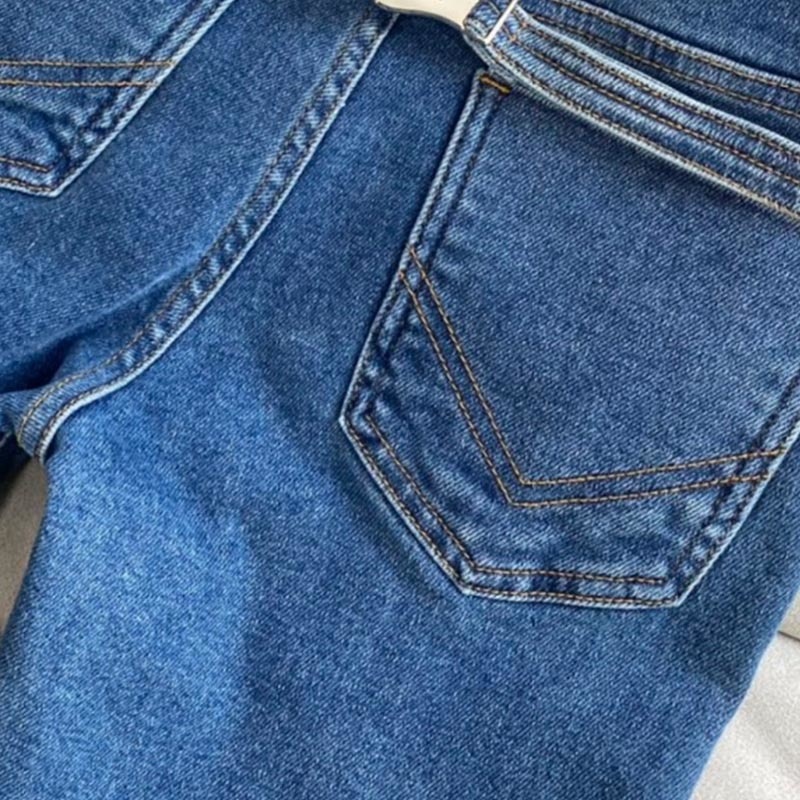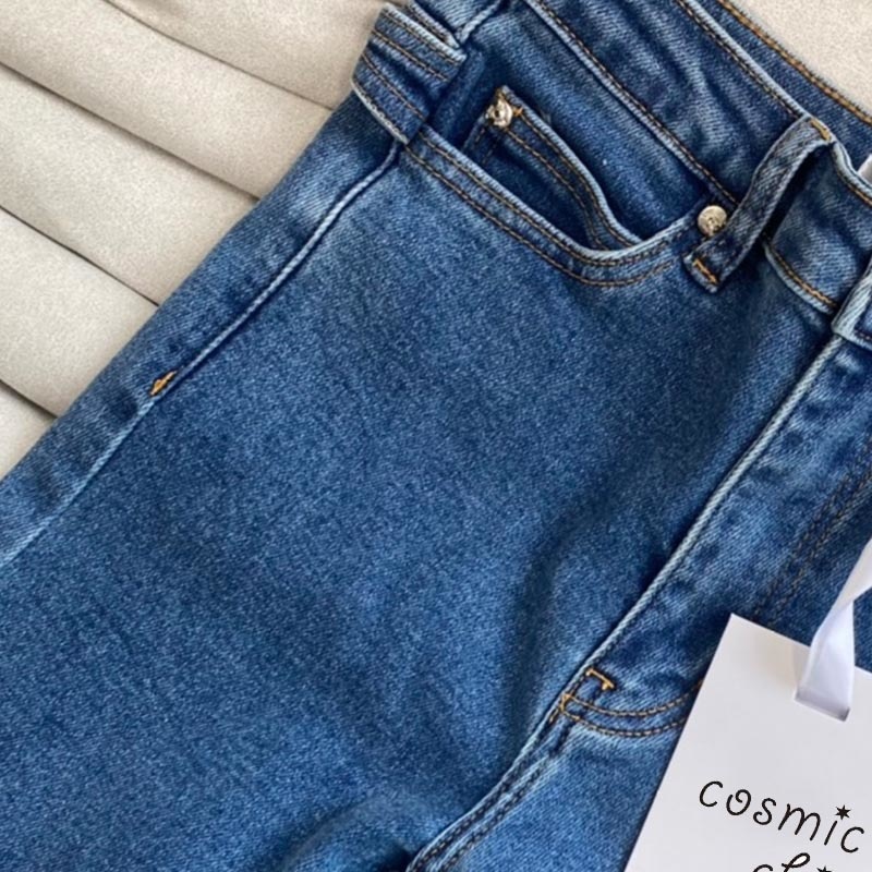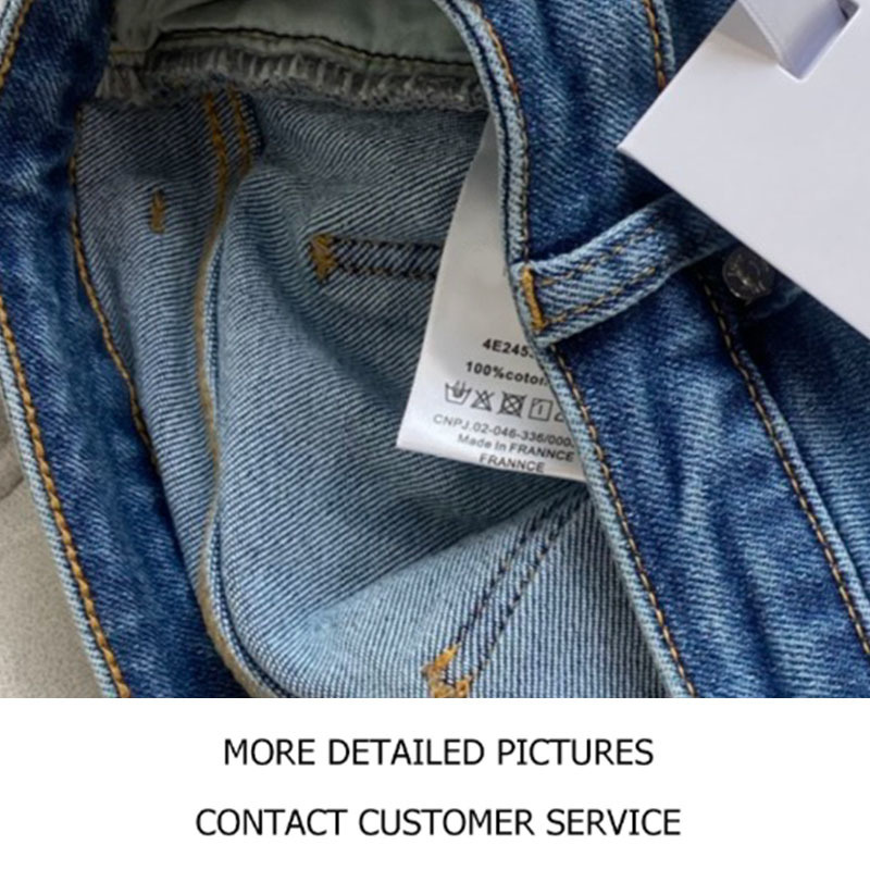 22 Spring Vintage Stretch Metal Logo Tight Jeans Women Casual Button Zipper Blue Jeans Slim Metal Decoration Pocket Pencil Pants