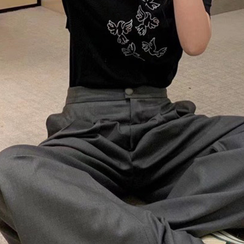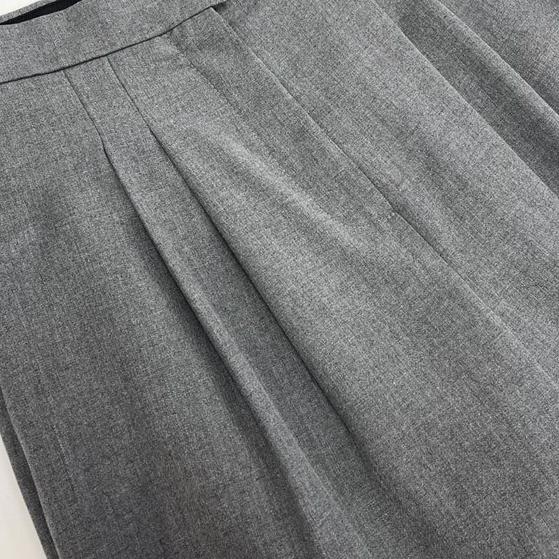 22 Wool Silk High Waisted Wide Leg Pants Women Casual Grey Button Zip Trouser Pleated Letter Logo Webbing Loose Mopping TrousersA0469