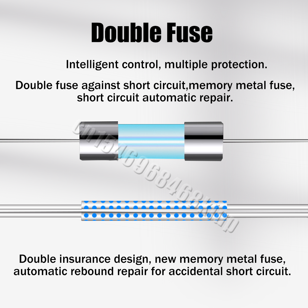Double fuse against short circuit,memory metal fuse, short circuit automatic repair,double insurance design, new memory metal fuse, automatic rebound repair for accidental short circuit.