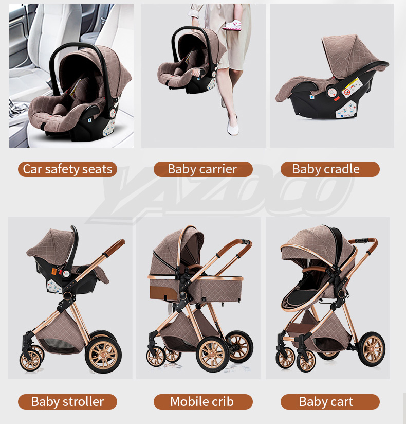 Stroller frame, 2 in 1 basket, baby safety seat, 4 wheels, armrest, basket adapter, foot cover, cup holder, cotton pad