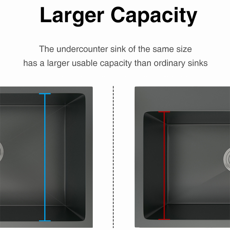 Gently Rounded CornersFor easy cleaning,Reduce waste of space in the bowlThe kitchen sink sold by Hankii can be equipped with a conventional 114 mmdiameterGarbage disposal on the market