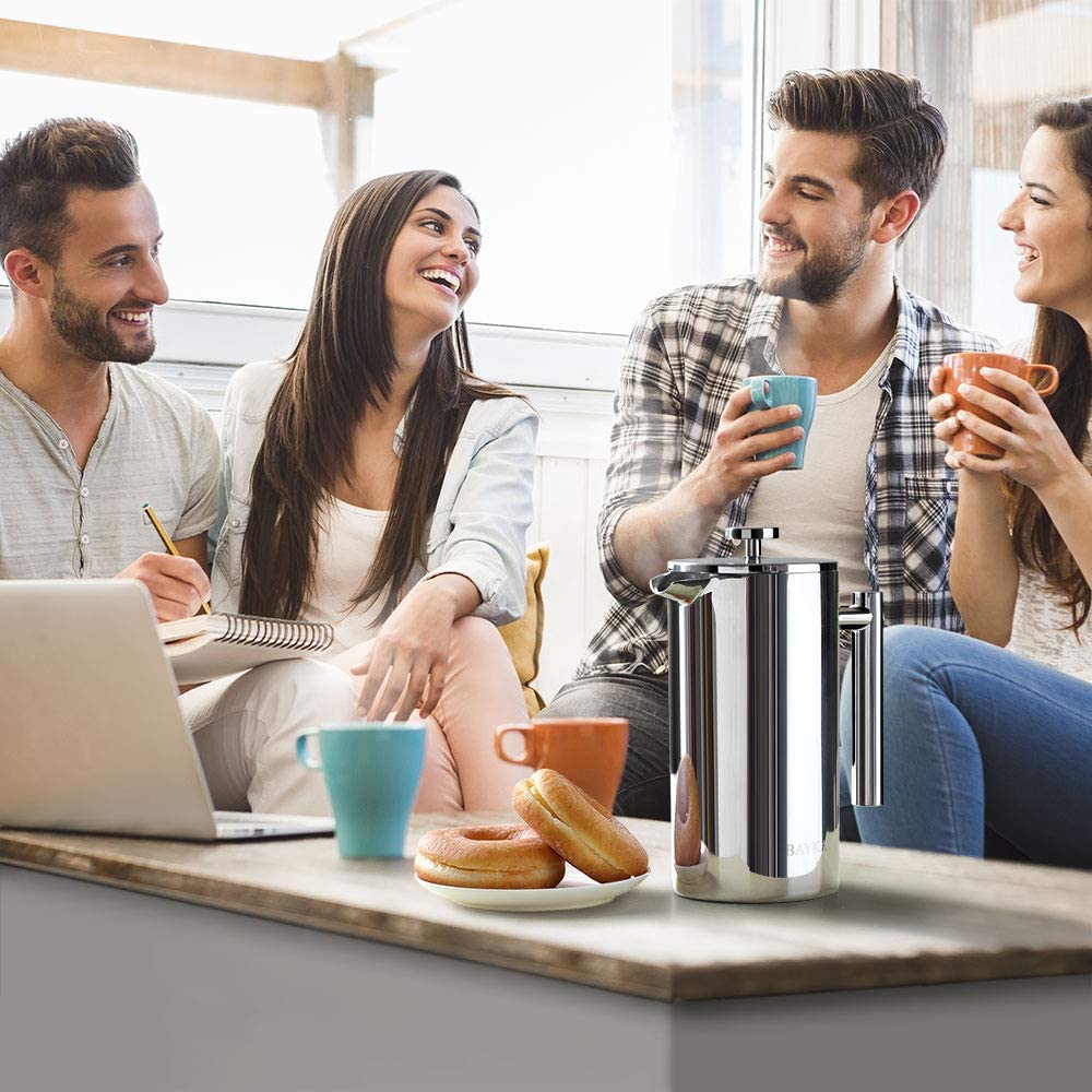 4 Minutes is All It Takes - Sleek and straightforward, french press coffee maker is convenient for anyone with limited budget, time or counter space. You just need 4 minutes to brew a rich and full-bodied cup of coffee at home or in travelling.