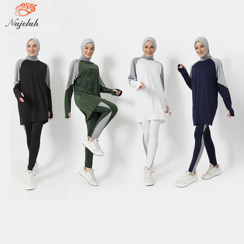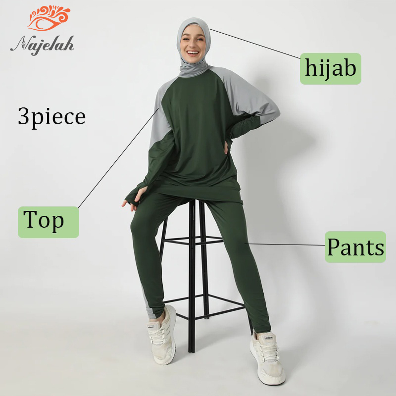 3PCS Muslim Sport Wear Sets For Women Hijab Islamic Clothing Woman Blouse Modest Long Sleeve Tops Pants Casual Clothes
