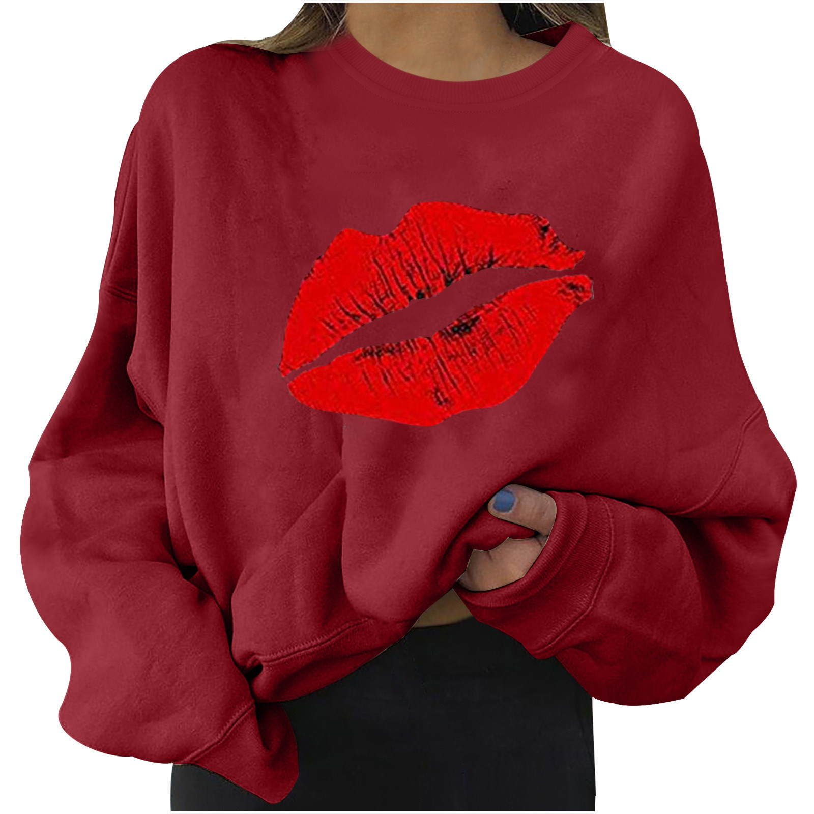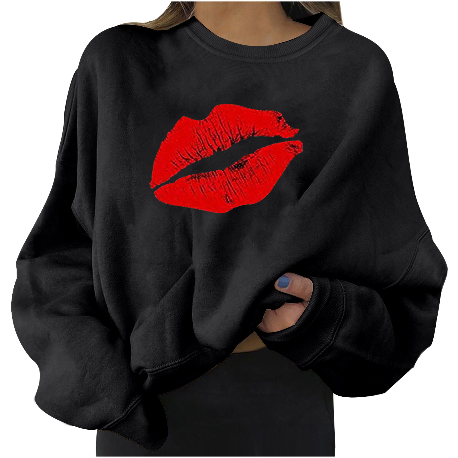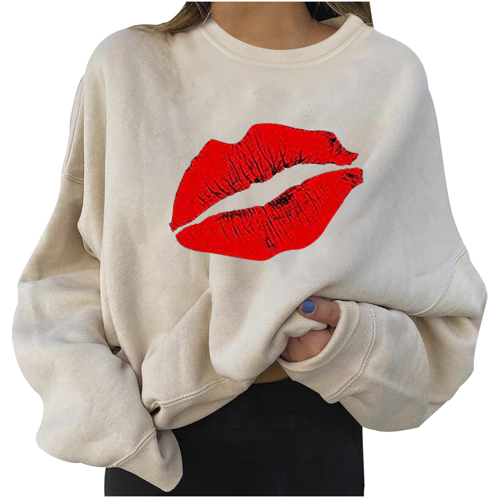 4# Women Plus Size Sweaters Long Sleeve Color Block Lip Print Straples Collar Sweaters Top Autumn Spring Pullover Свитер Женский