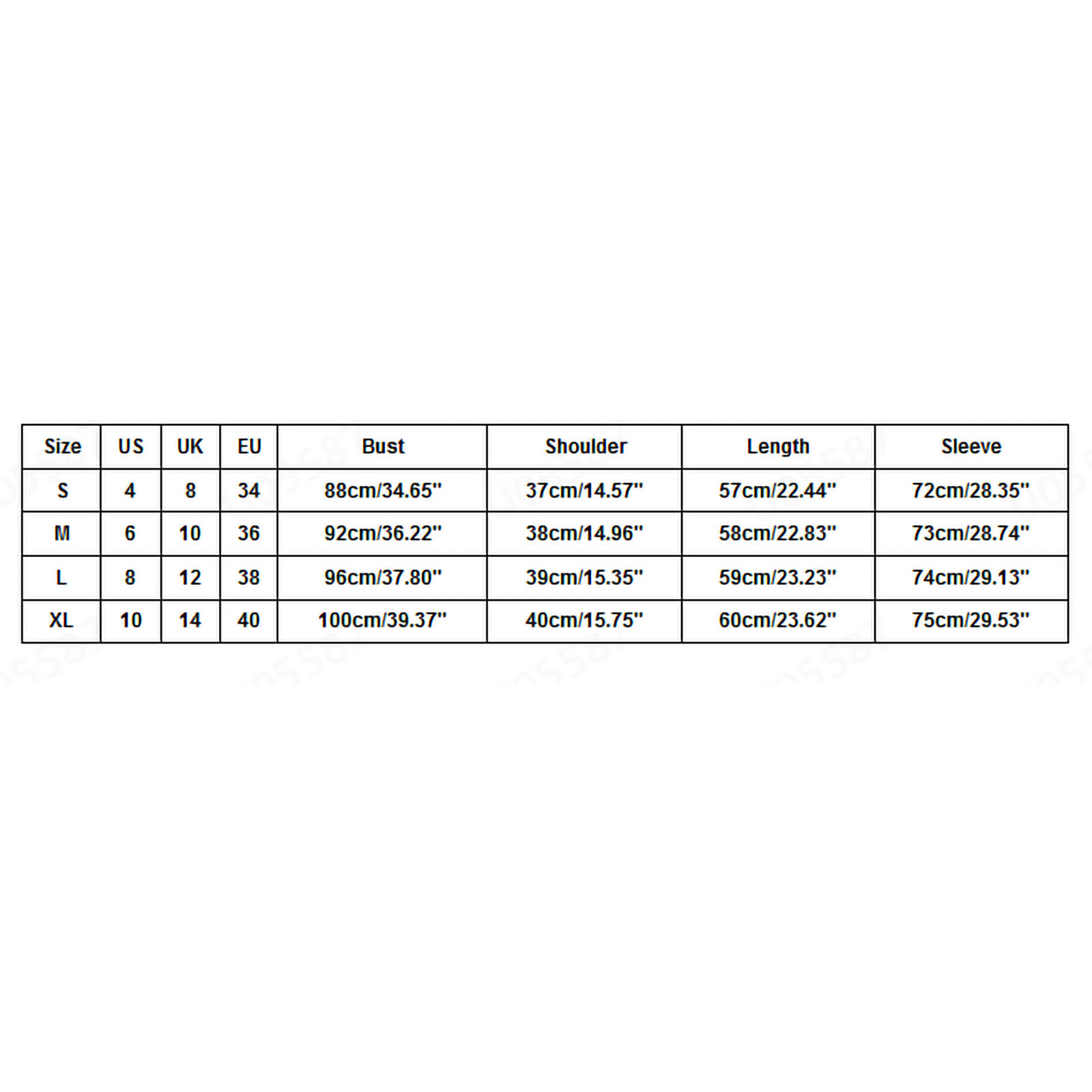 Size US UK EU Bust Shoulder Length Sleeve