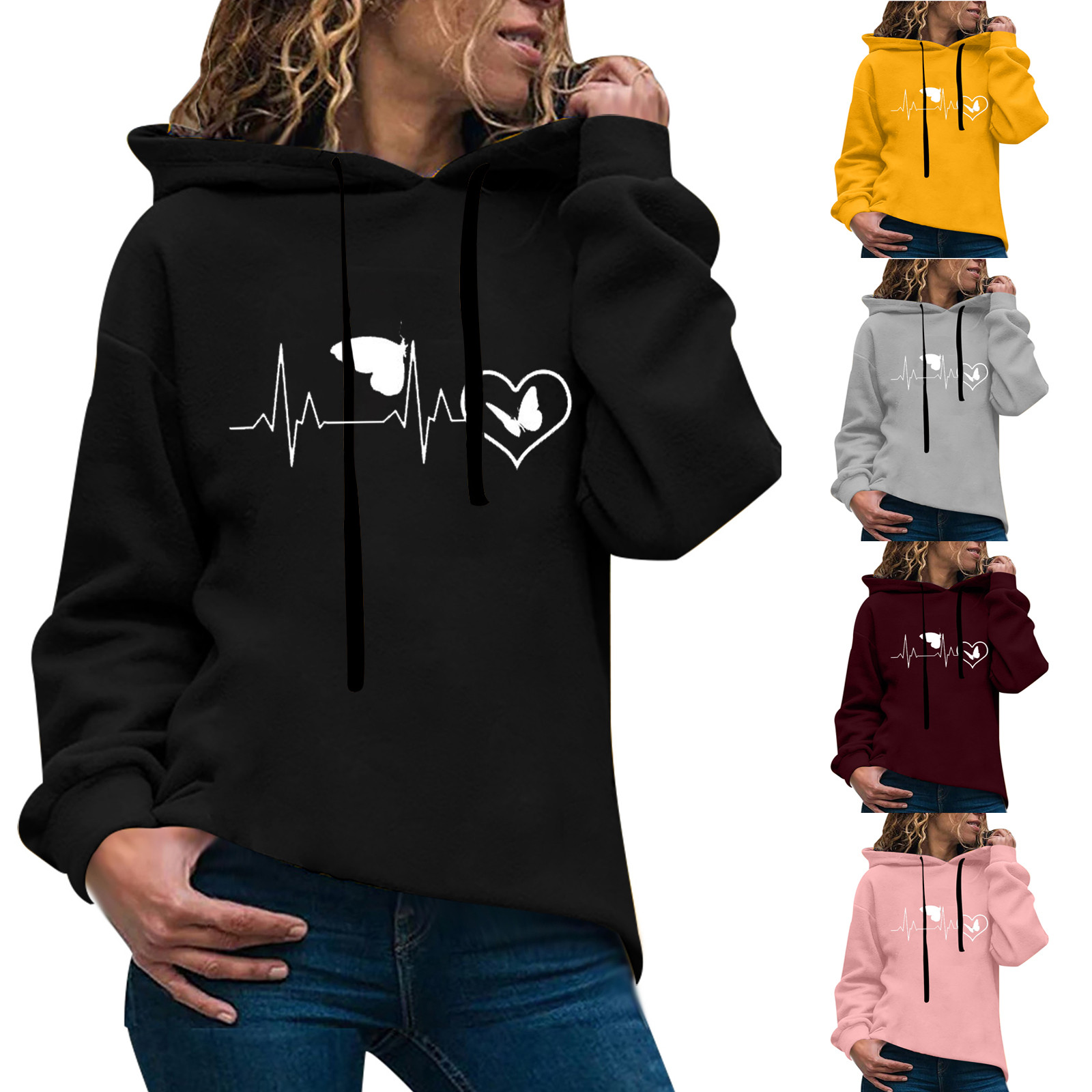 40# Women's Autumn Winter Print love Hoodie Long Sleeved Comfortable Pullover Hoodies Tops Leisure Keep warm Sweatshirts свитшот