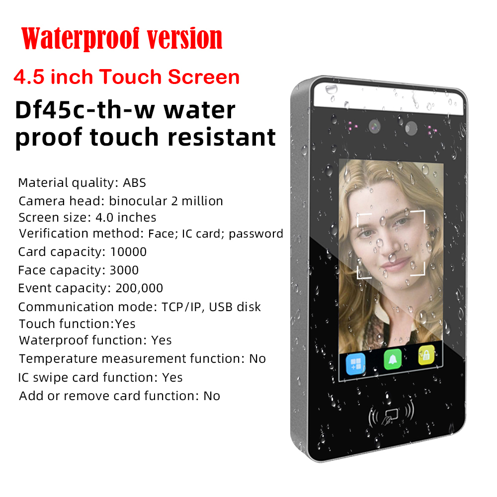 4.5 inch RFID Card Waterproof Touch Screen Face Recognition Dynamic Fingerprint Employee Time Attendance Access Control