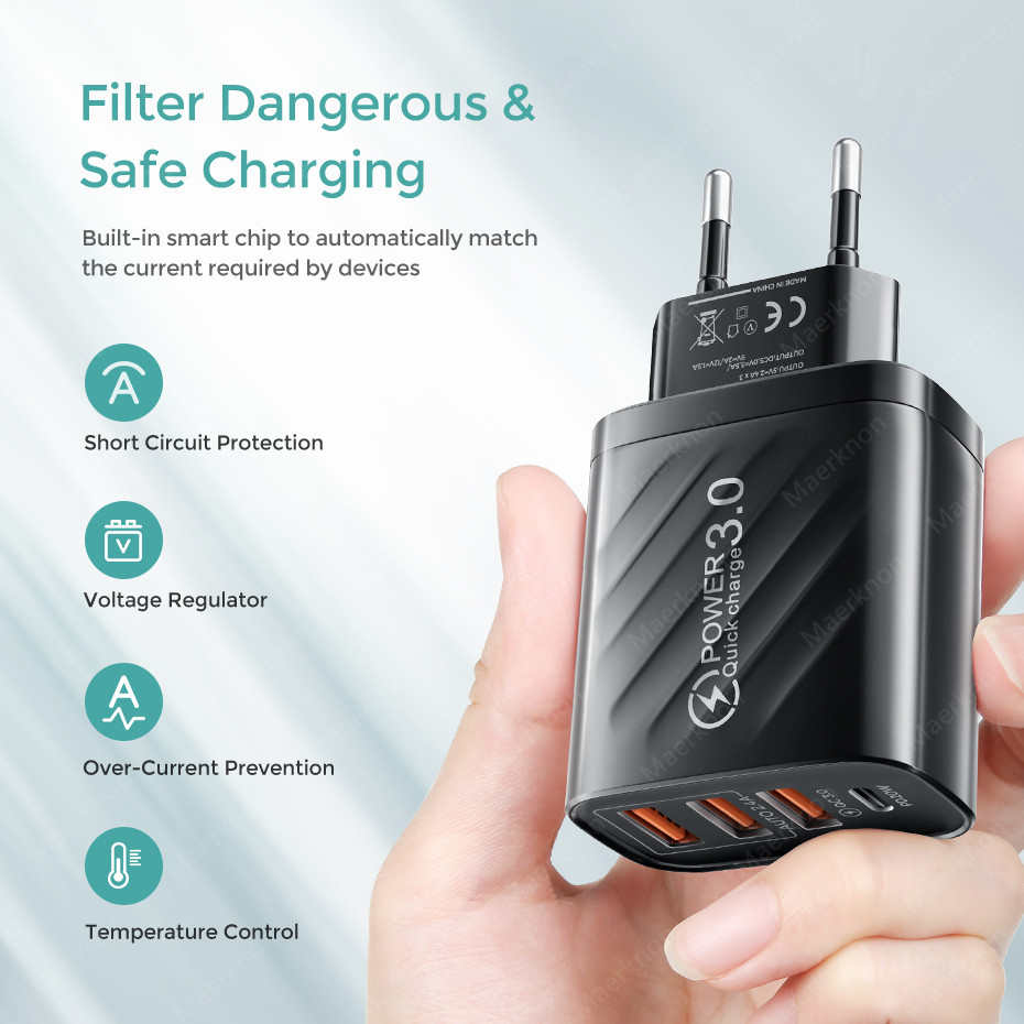 48W USB Charger 4 Port Type C Quick Charge QC 3.0 For Samsung Xiaomi mi10 Huawei Charger adapter For Smartphones PD Fast Charging