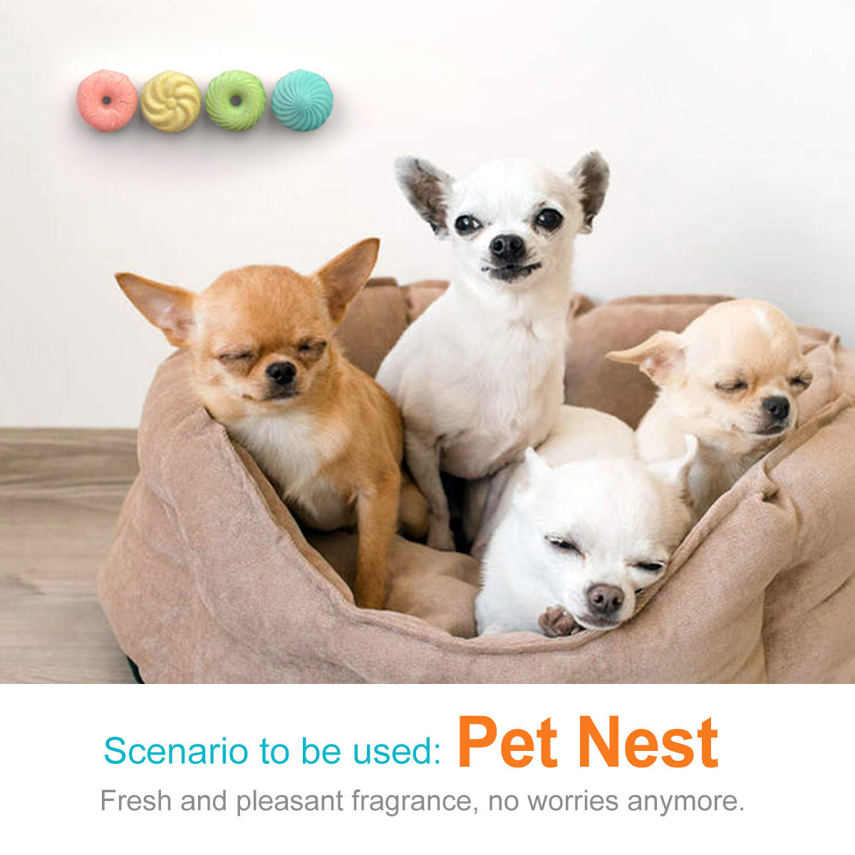 4Pcs/Set Doughnut Air Freshener Deodorant for Pet Cat Dog House Room Litter Rabbit Cage Solid Washable Long Lasting Aromatherapy