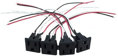 4PCS 3 Pin Panel Mount Plug Adapter 15A 125V AC Square Power Socket with 18AWG Cable for Power Cabinet Vehicle Power Supply Lighting Equipment Communication Cabinet