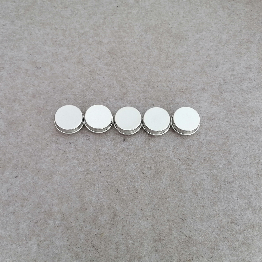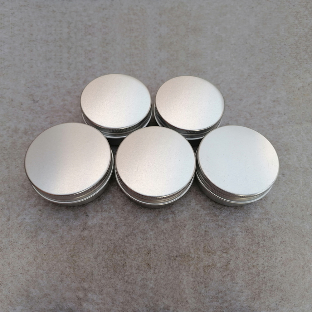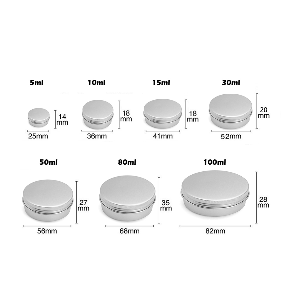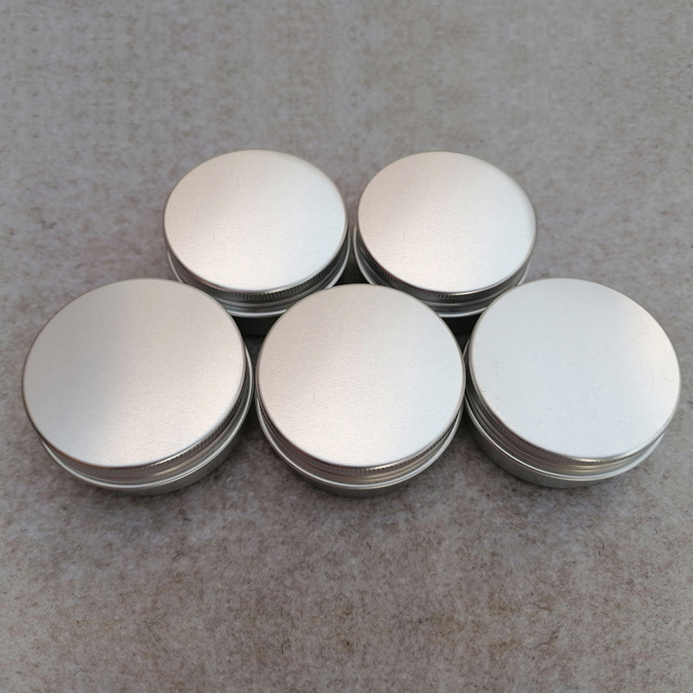 2,These round cans containers come with screw-top lids and are made of Aluminum. They have no sharp edges, all edges are rounded and are seamlessly formed from 0.24mm metal.