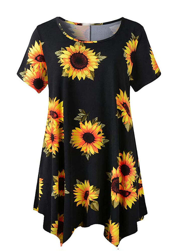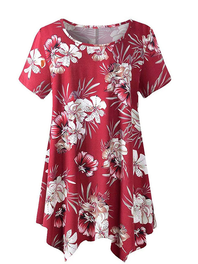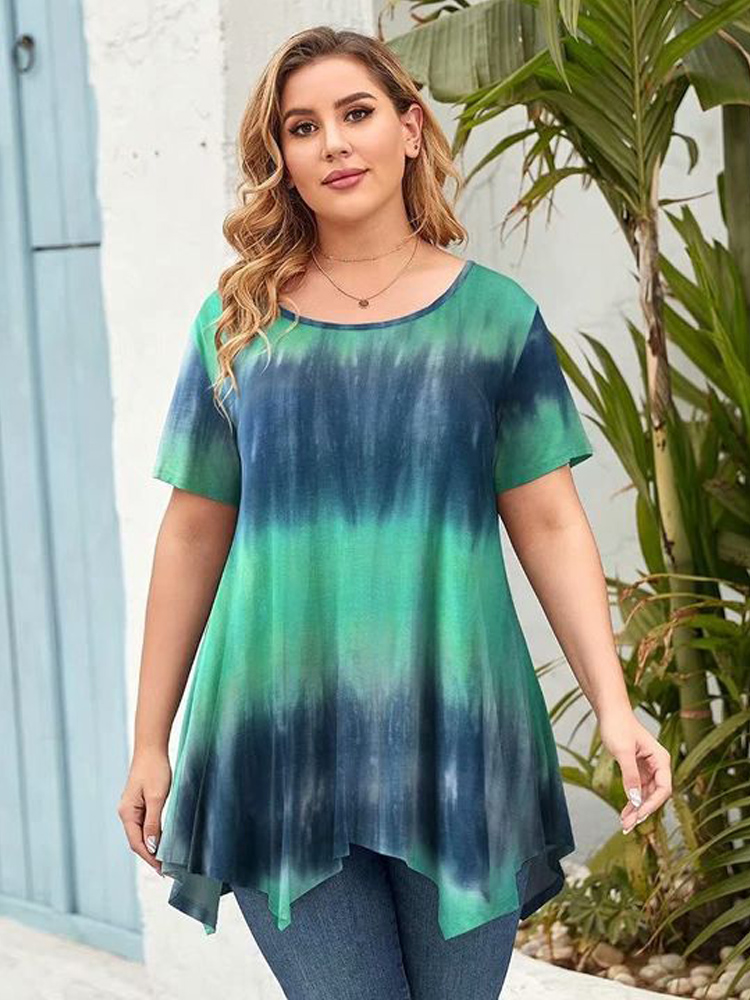 5XL 6XL Plus Size Women Clothing Summer Short Sleeve Tie Dye Print Casual Tee Shirt Peplum Tops Irregular Long Blouse