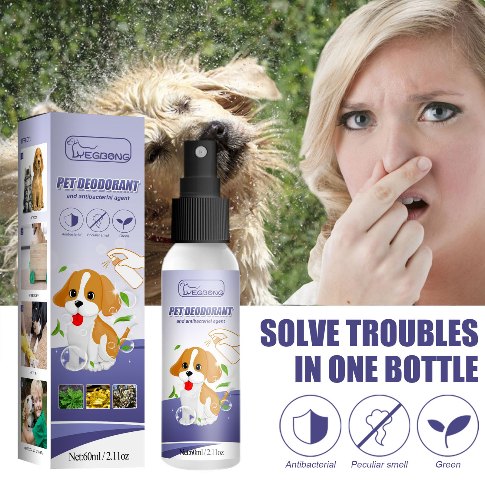 60ml Dog & Cat Deodorant With Natural Plant Formula Pet Liquid Perfume Spray To Make Your Puppy Smell Great Long-Lasting Clean A