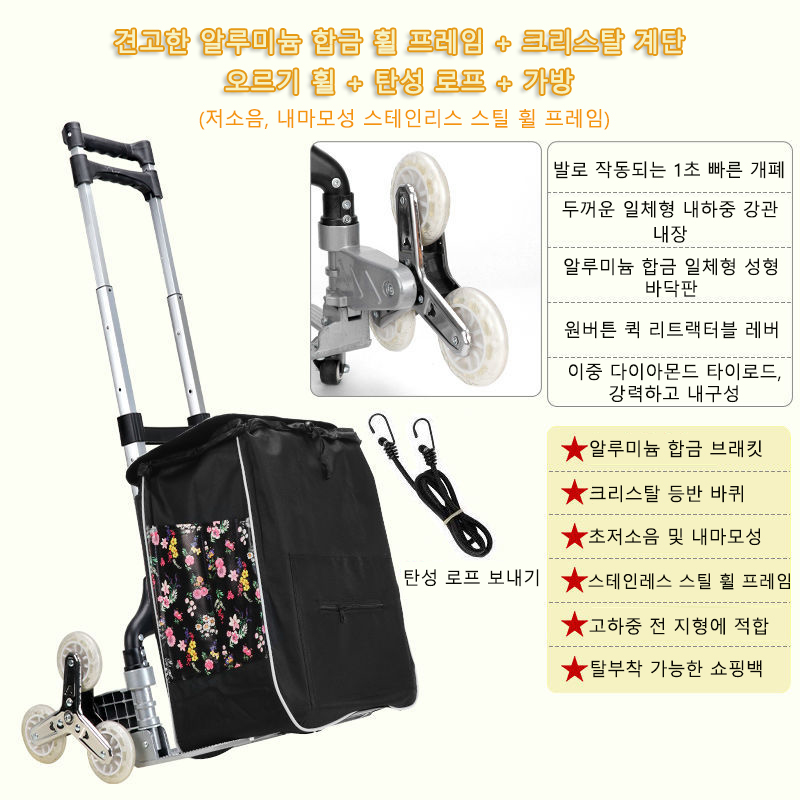75kg All Terrain Stair Climbing Cart Hand Truck with Bungee Cord Portable Folding Trolley for Upstairs Cargo with Bag