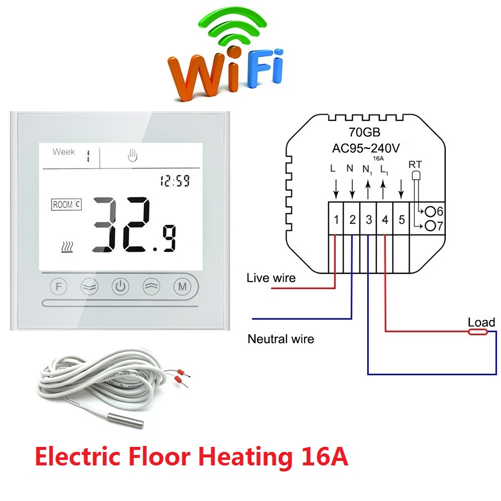 MK70-GB-WiFi: Electric floor heating with WiFi function, Voice control, 16A.