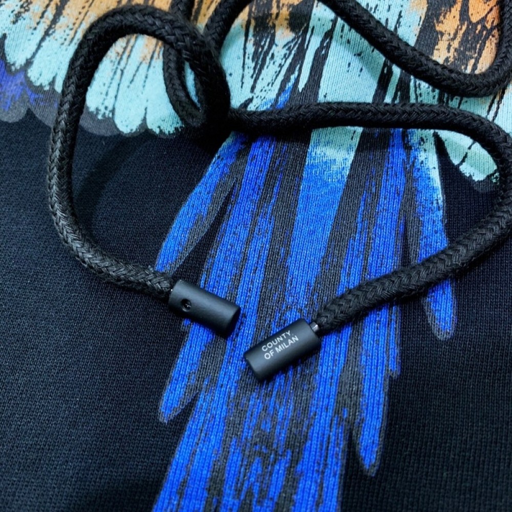 A+ Quality Marcelo Burlon Mix blue Wings Hoodie Black