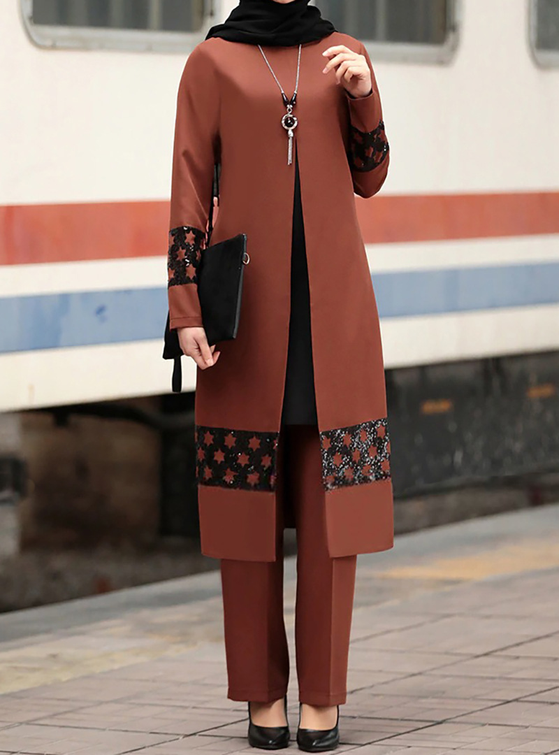 Aid Two Piece Muslim Sets Abaya Women Musulman Ensembles Turkey Hijab Dress Caftan Moroccan Kaftan Islam Clothing Abayas Suits