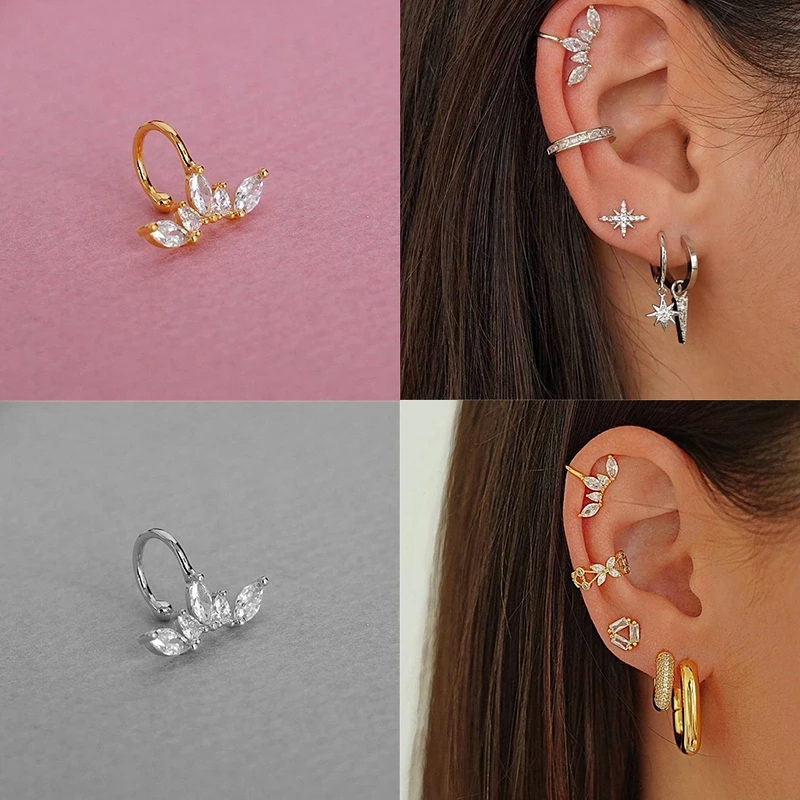 Cross Ear Cuff Non Pierced Earrings for Women 925 Sterling Silver Micro Pave CZ Small Clip on Earrings Cartilage Jewel 1Piece
