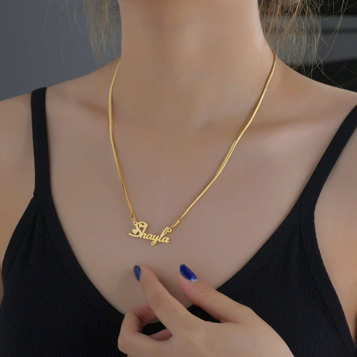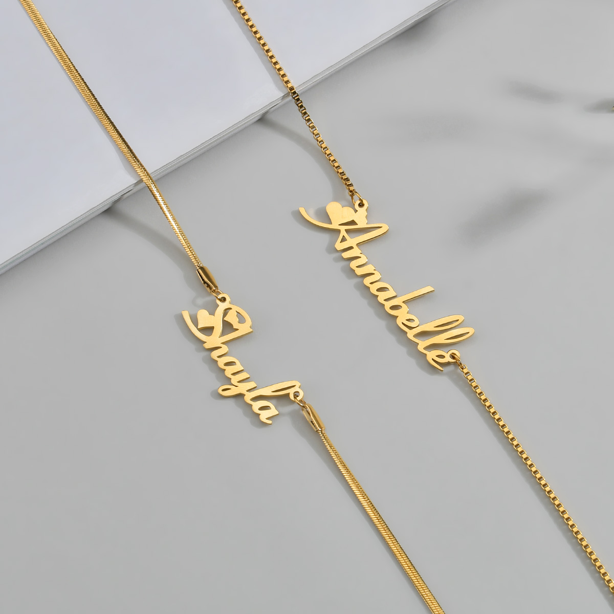 Name:Atoztide Custom Name Necklace Stainless Steel Box Chain Blade Nameplate Pendants Heart Personalized Letter for Women Jewelry Birthday Gift