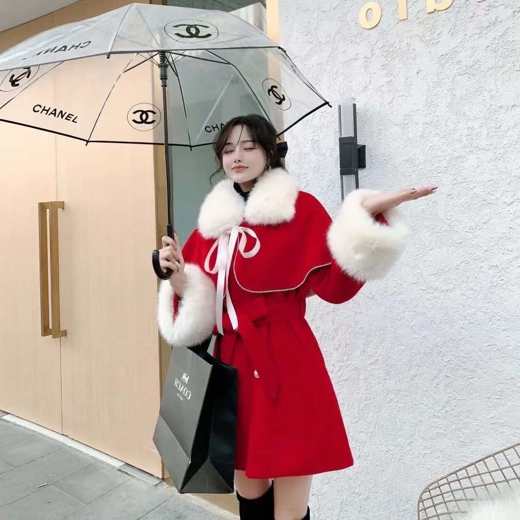 Autumn Warm Cloaks Windbreakers Elegant Women's Jackets Winter Cashmere Wind Coat Dresses Clothing