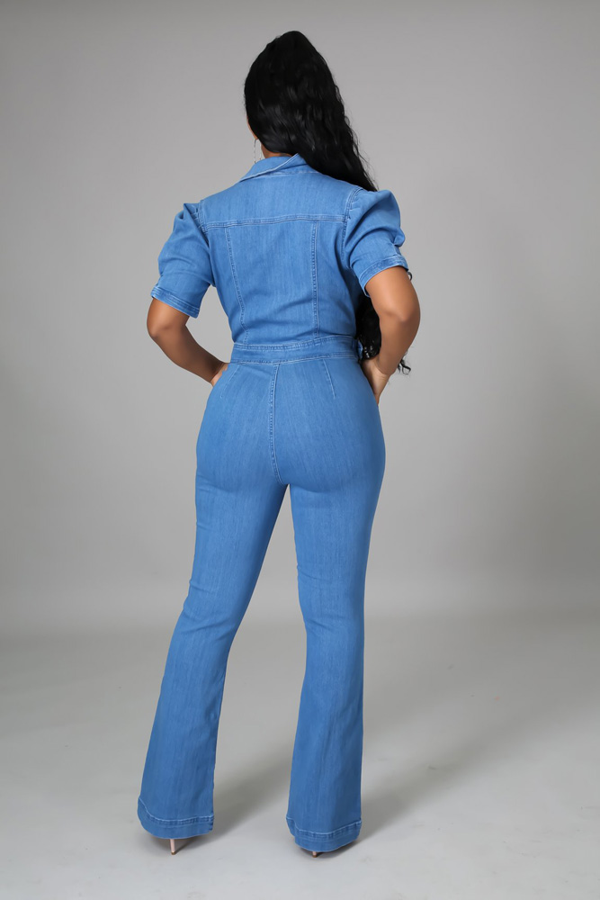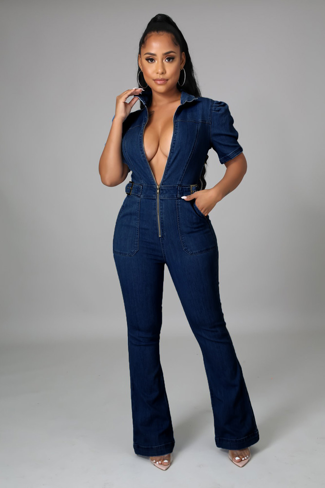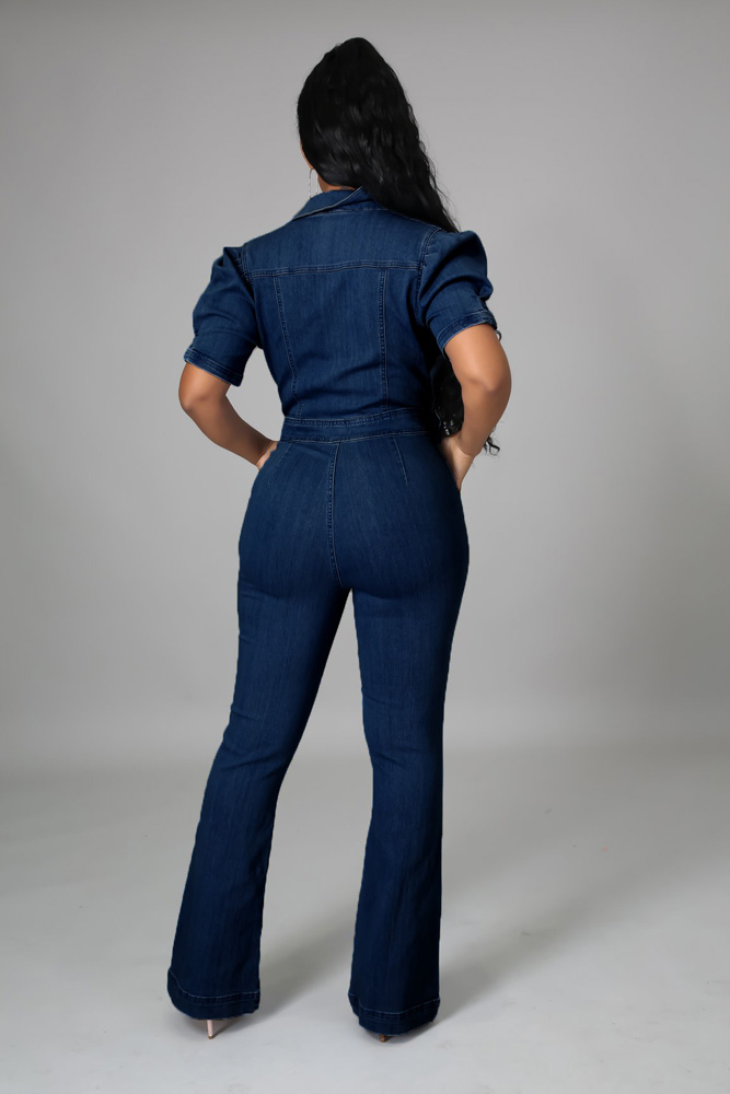 Autumn Denim Overalls Sexy Women Turn Down Bodycon Jeans Casual Straight Romper Jumpsuit