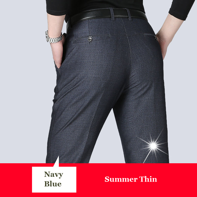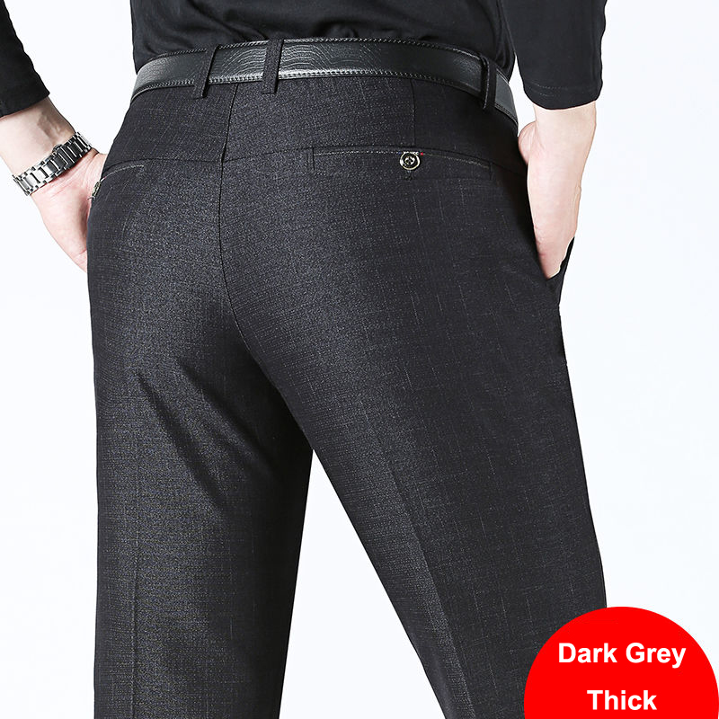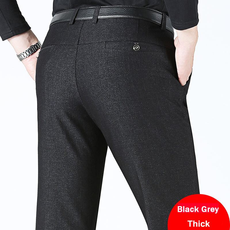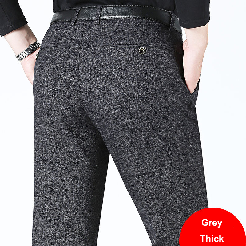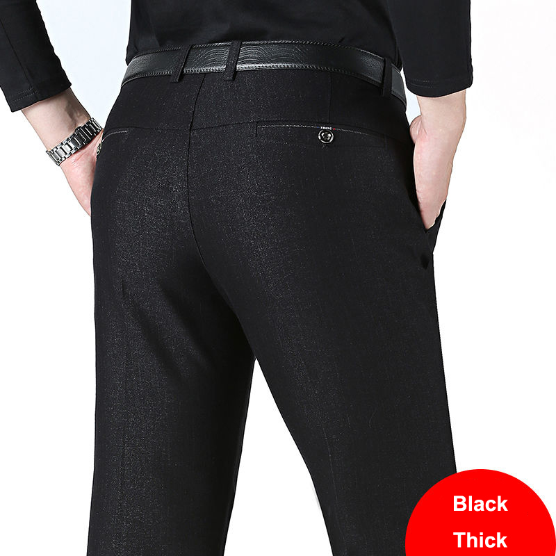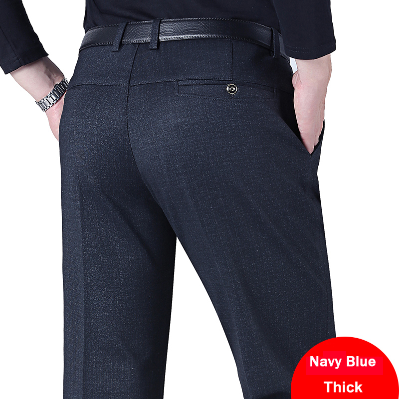 Autumn Winter Men's Slim Casual Pants Business Stretch Thicken Trousers Men Solid Pant Black Navy Man Big Size