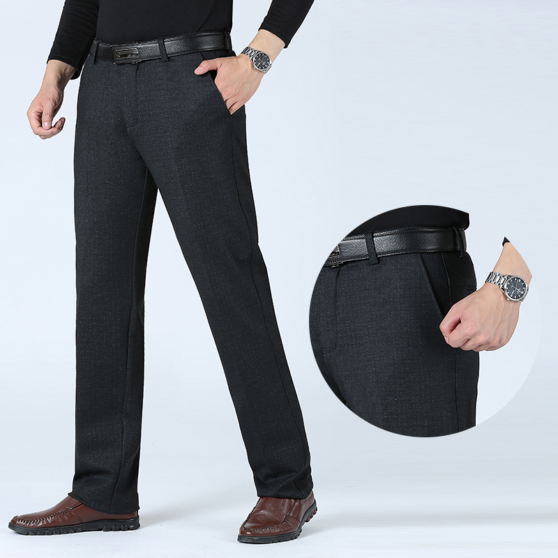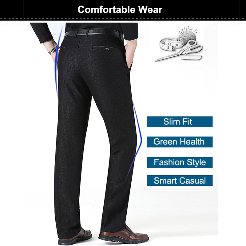Autumn Winter Men's Slim Casual Pants Business Stretch Thicken Trousers Men Solid Pant Black Navy Man Big Size