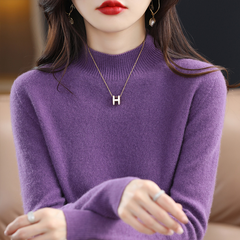 Autumn Woman's Sweaters Female Pullover Long Sleeve Half Turtleneck Basic Style Jumper Wool Knitted Tops Cashmere Sweaters