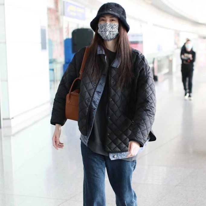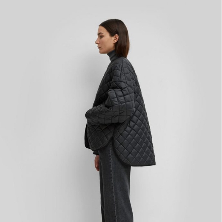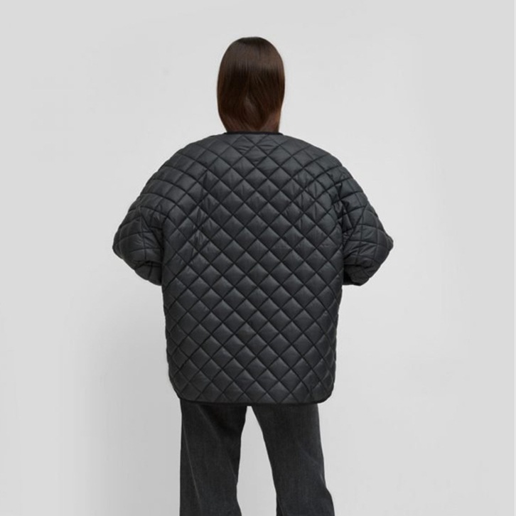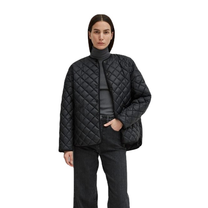Autumn and Winter Short Front and Back Long Rhombus Check Short Round Neck Button Cotton Jacket