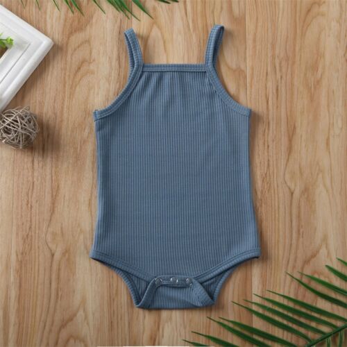 Baby Summer Clothing Newborn Baby Boy Girl Sling Bodysuit Jumpsuit Sleeveless Outfit Ribbed Solid Clothes Set