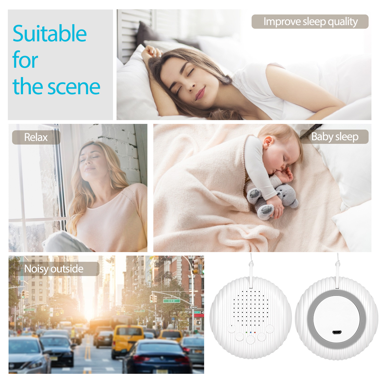 Baby White Noise Machine USB Rechargeable Timed Shutdown Sound Machine Sleep Soother Relaxation Monitor For Baby Adult Office