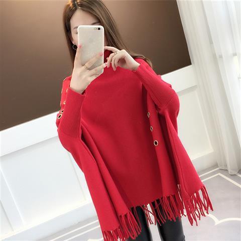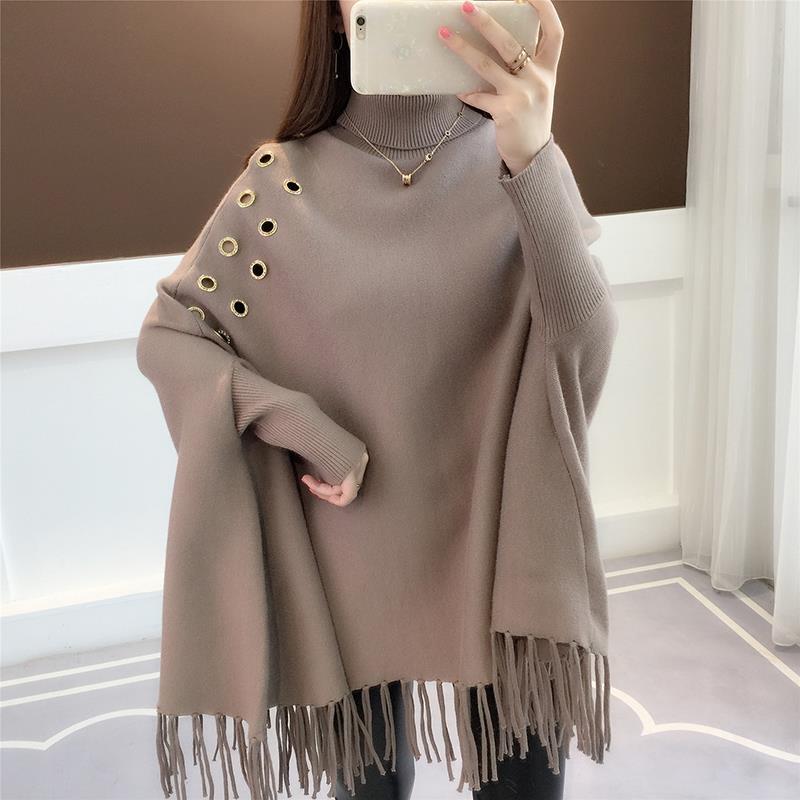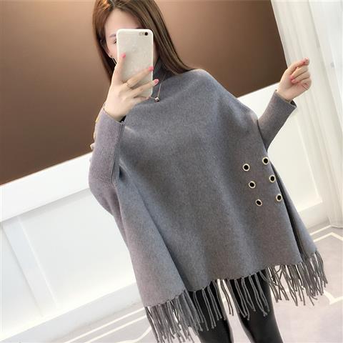 Bat sleeve loose knit sweater turtleneck cloak coat autumn and winter sweater women's pullover shawl wear tassel tide