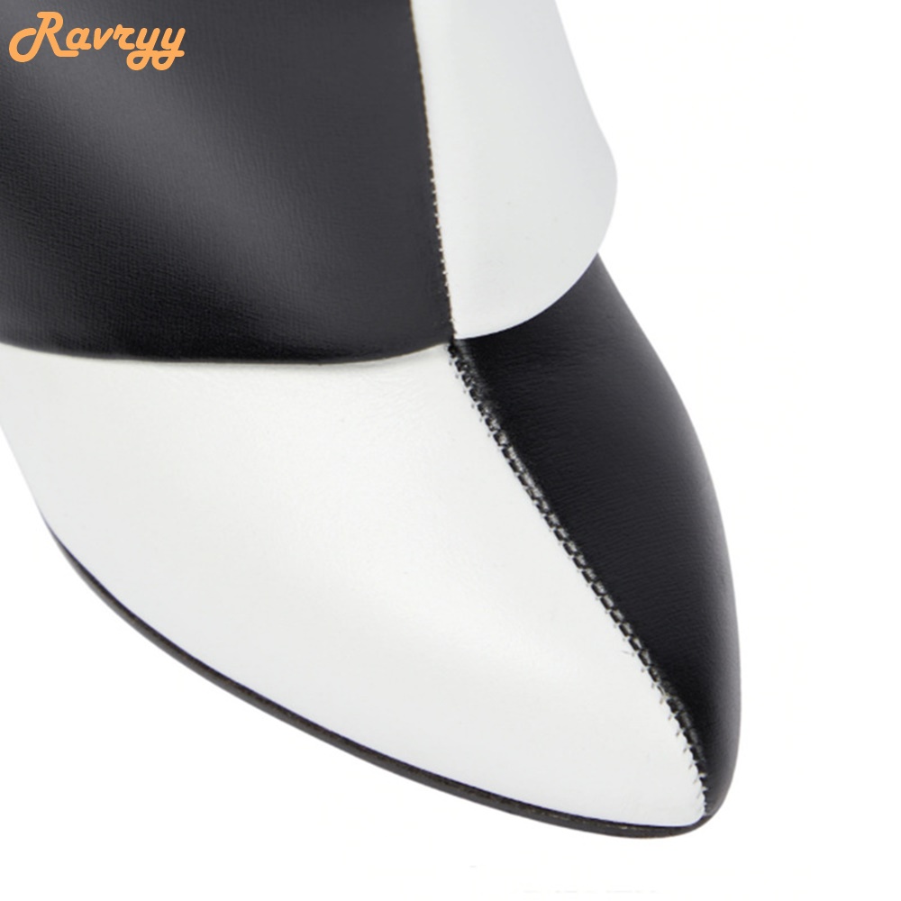 product : Black/white Splicing Cowhide Boots