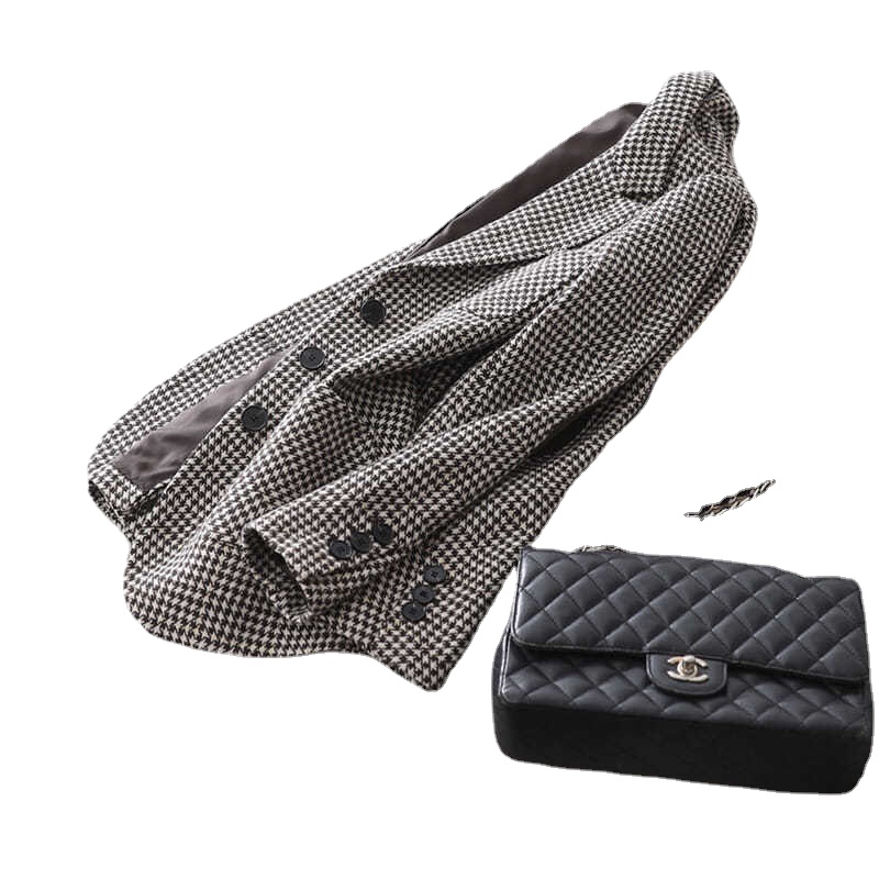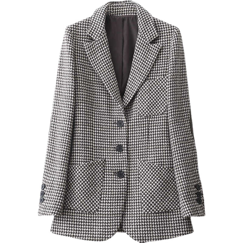 Styles2 : houndstooth All-match Temperament Top Single Breasted