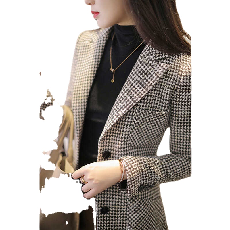 Blazer Women Plaid Small Suit Jacket Ladies Spring-autumn Slim Fit and Thin All-match Temperament Top Single Breasted