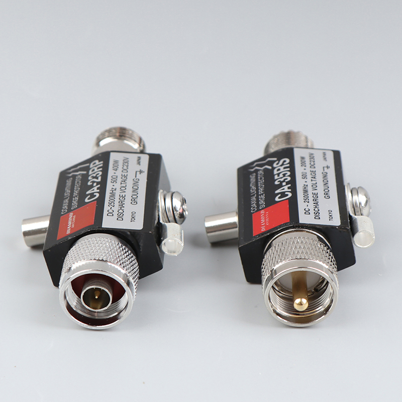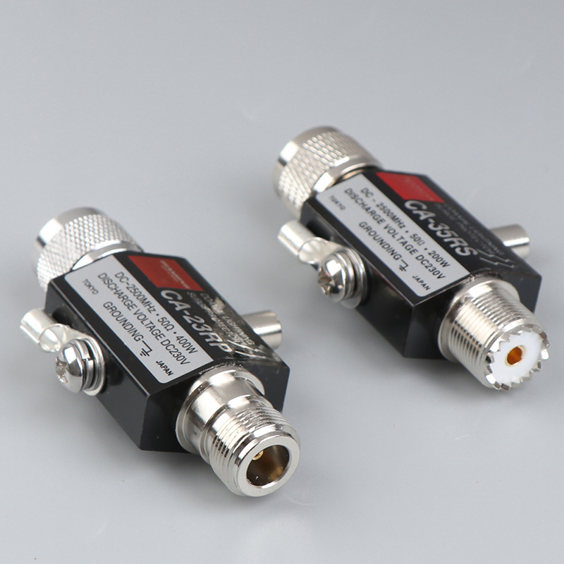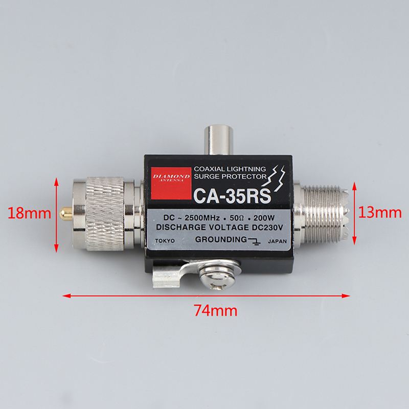 Specifications: requency Range:DC-1000MHz V.S.W.R≤1.1 Loss ≤0.2dB Withstand power:400W PEP Voltage at discharge start:DC350V+-15% Discharge voltage of shock wave(1 x 40)uS:1,000V Withstand current of shock wave(1 x 40)uS:6,000A Repetitive discharge of shock wave(1 x 40)uS 500A,over 500 times:DC350V±20% Insulating resistance DC 100V:Over 10,000M ohm Size:7.5x4.5x2cm Type:CA-35RS