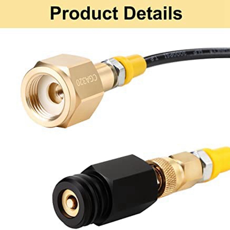 HIGH-QUALITY ADAPTER : Our cga320 connector hose is 60inch long, which included a fastening fasteners to prevent the product from loosening and ensure airtightness. and it can withstand up to 100 °C (212 °F). The rubber ring is made of high quality material, which is safe and reliable. It will not transmit chemical taste to carbonated water, and it can provide better air tightness.