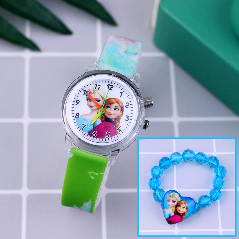 Fashion Cartoon Flash Light Girls Watches Kids with Rracelet Silicone Strap Princess Elsa Children Watches Clock reloj infantil