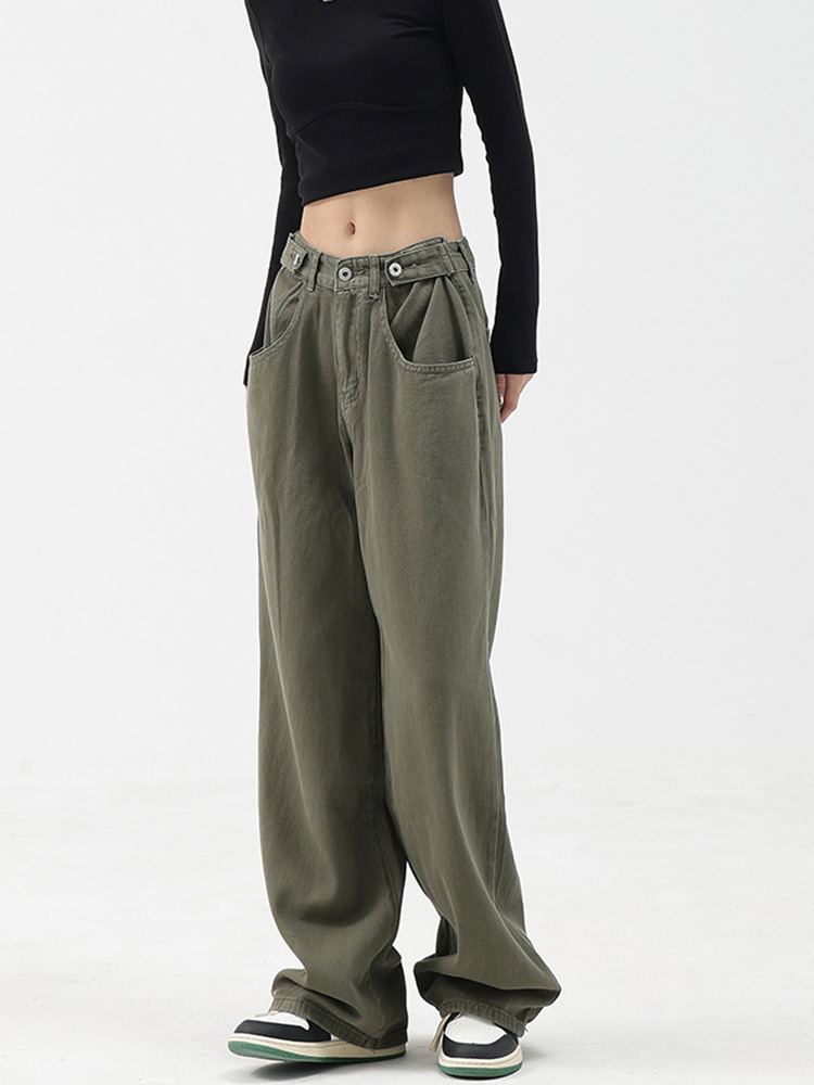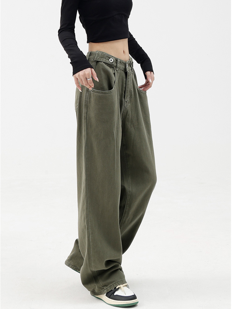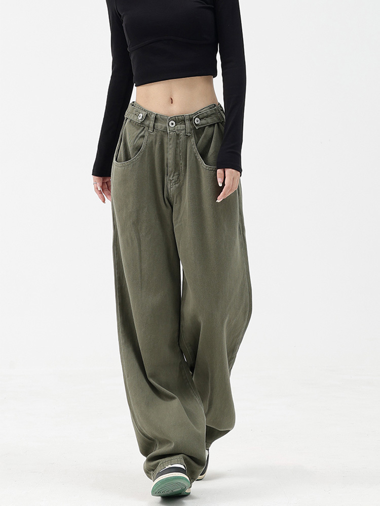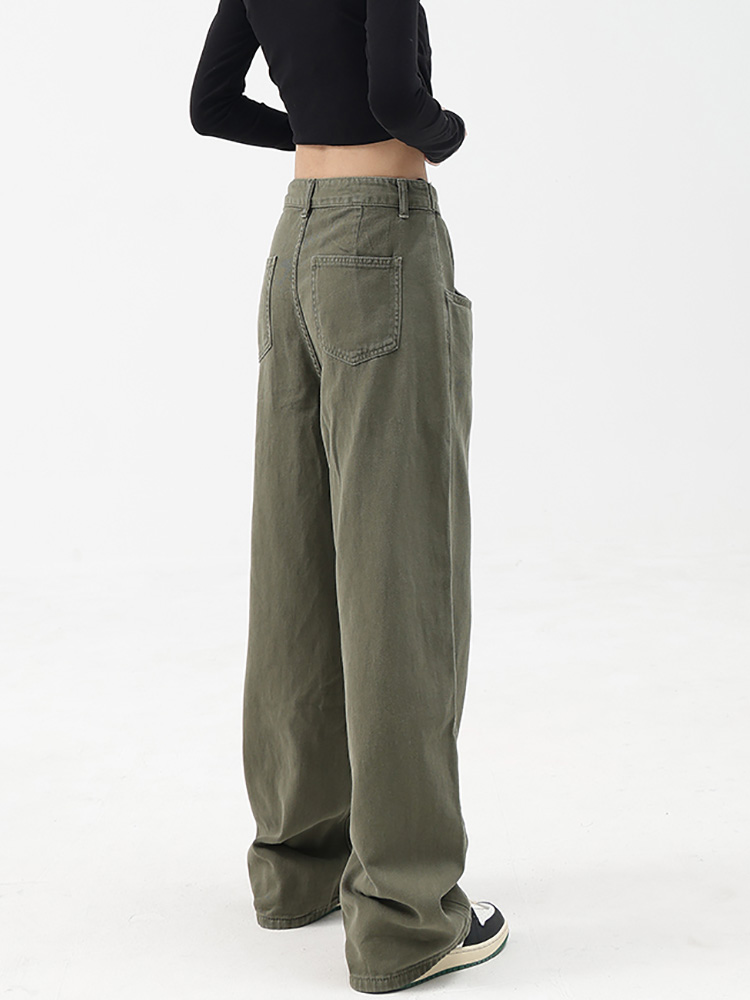 Casual Autumn Women Long Jeans Trousers High Waist Pockets Loose Female Wide Leg Denim Pants Ladies Floor-Length Pants