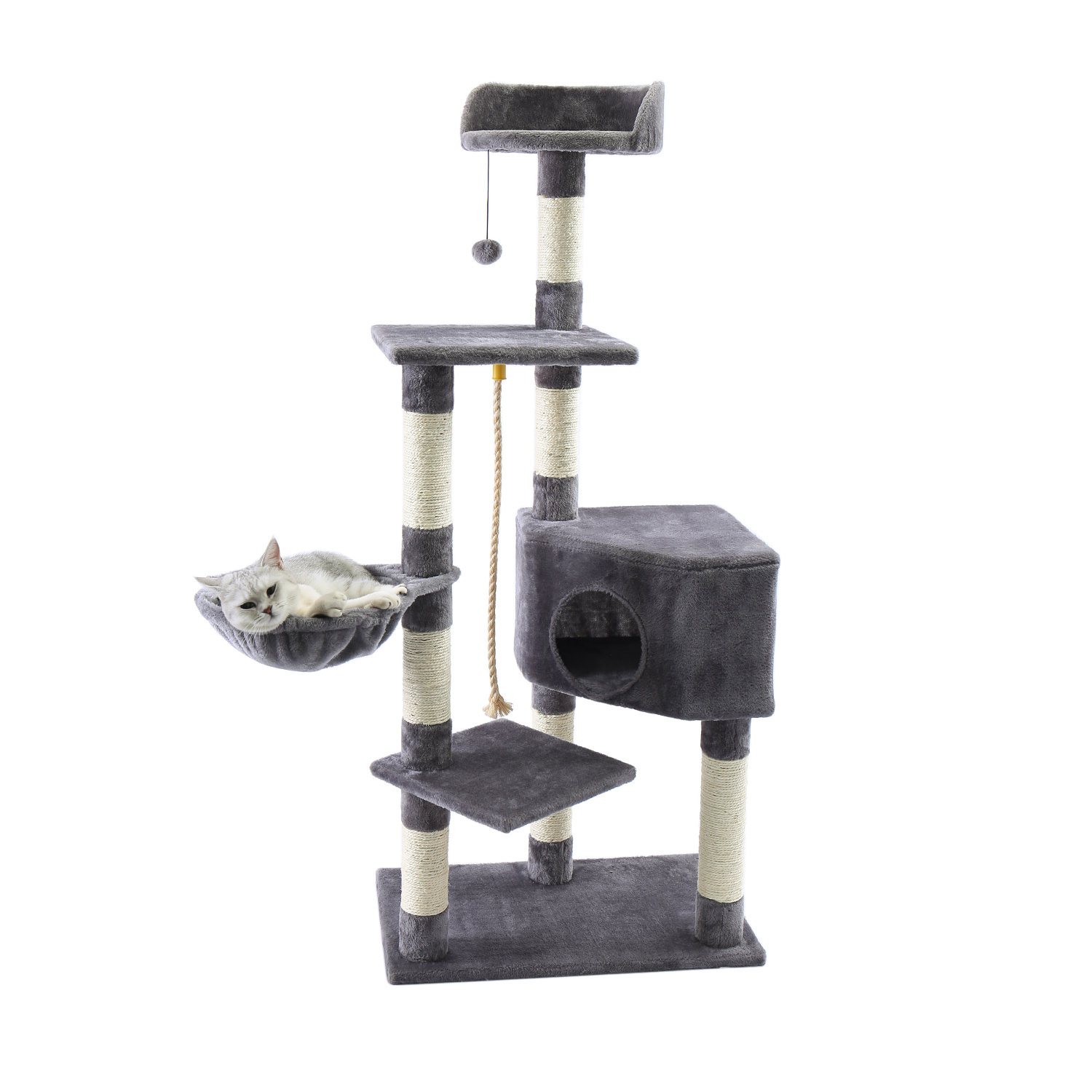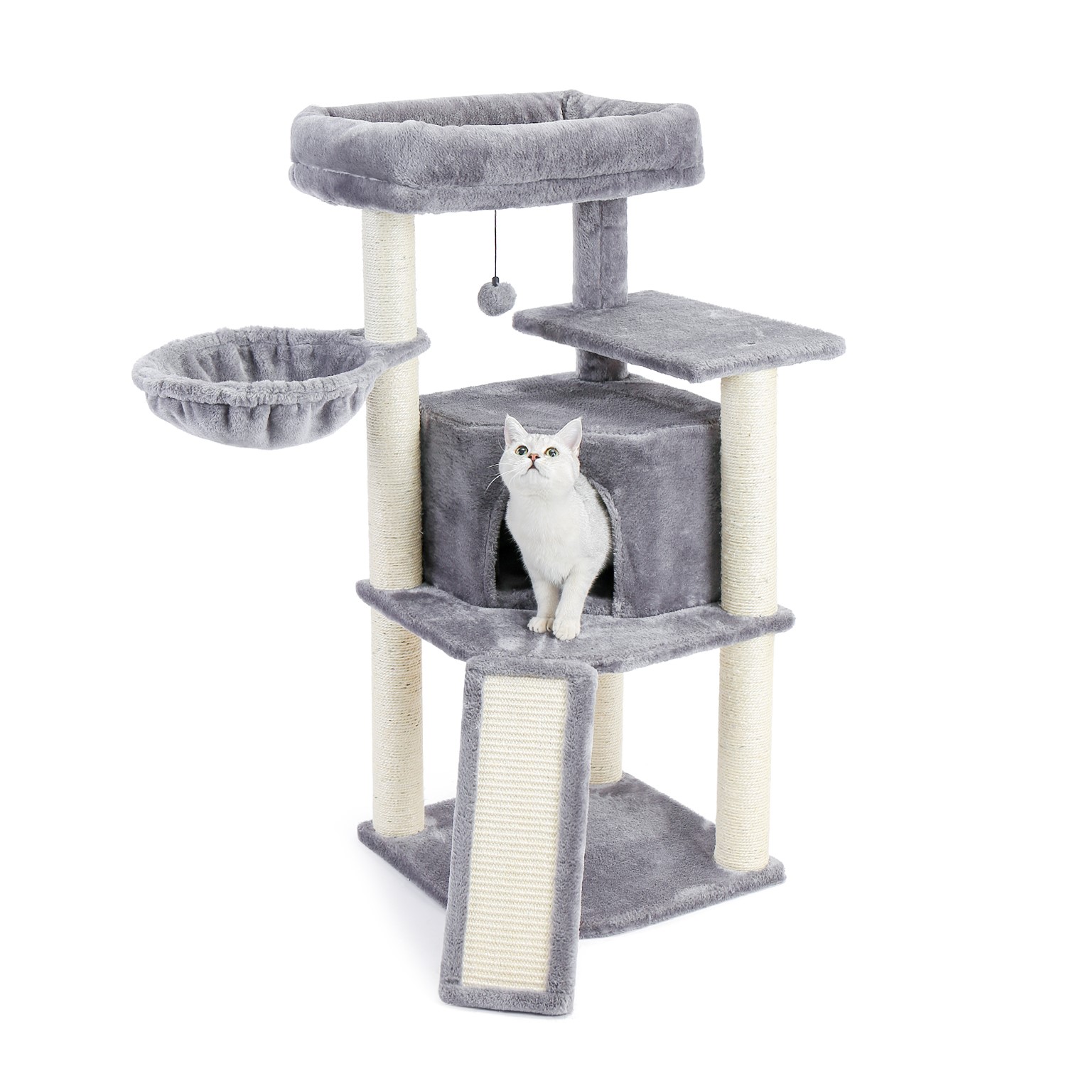ACTIVITY CENTER OF CATS - There are 1 perch on the top, 1 spacious perch on the second floor, 2 cat houses, 1 sisal ladder, 3 scratching posts, 1 toy ball and 1 rope... Offer cats lots of acticity options. The 4 floors design meets the jumping nature of the cat. They can jump, have a rest or play with friends in it.