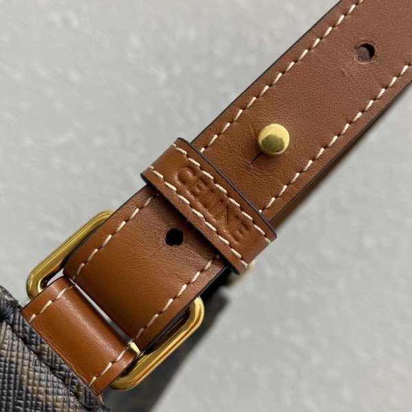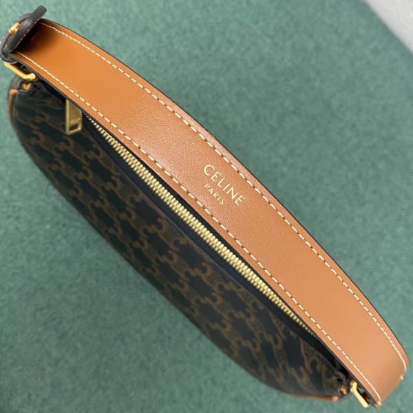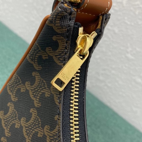Celine’s technical and artistic expertise is expressed to the fullest extent in the Ava bag. Designed in Triomphe canvas, the signature of the French fashion house, it offers golden finishes coupled with calfskin leather. Its elegant crescent moon design can be carried in the hand or on the shoulder by means of an adjustable shoulder strap. This accessory, full of character, impresses with its modernity, combined with a strong couture accent.
