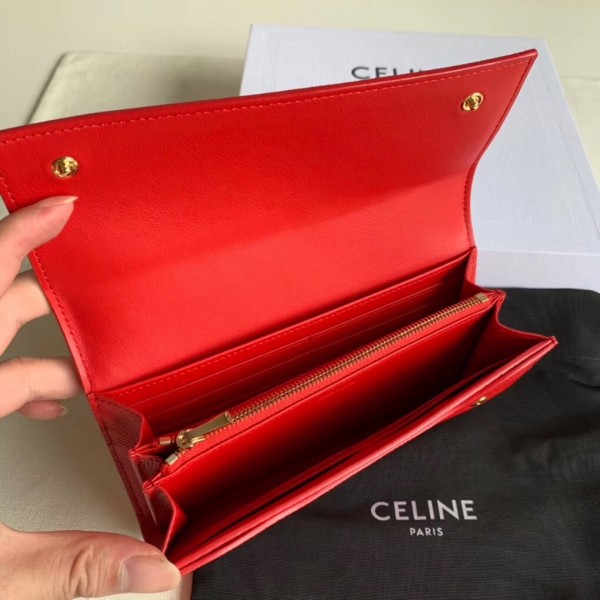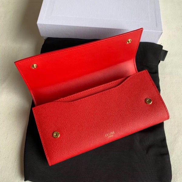 Celine Large Flap Wallet In Red Grained Calfskin