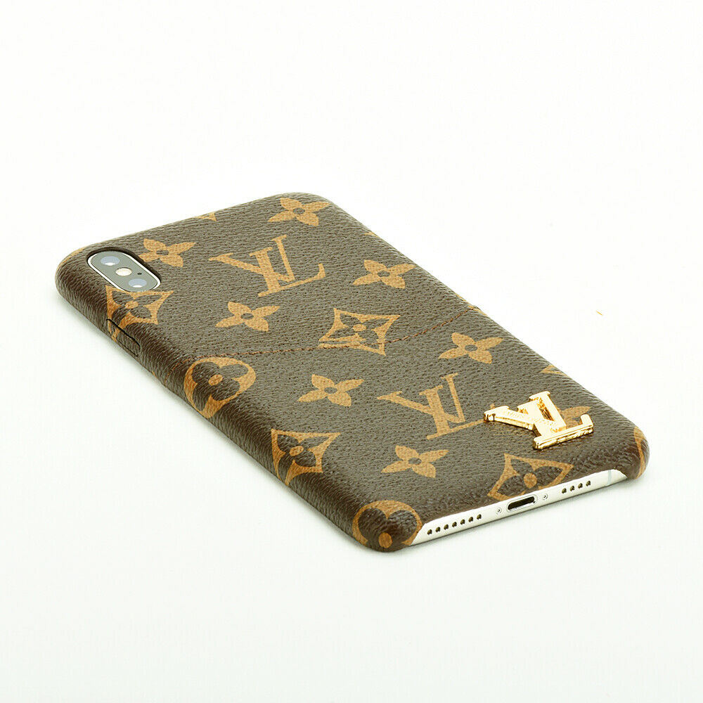 The classic monogram design with a convenient card holder design on the back to allow you to hold your important cards with your iPhone. With a beautiful metal emblem on the back of the case.