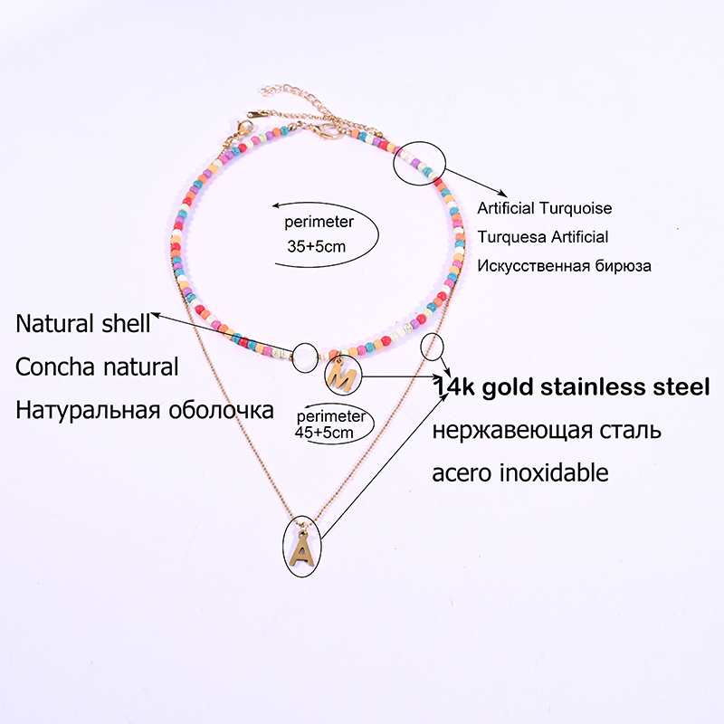 Product Type:Colorful Beads Initial Choker for Women Stainless Steel Chain Pendant Necklace Fashion Shell Heart Jewelry Boho Accessories